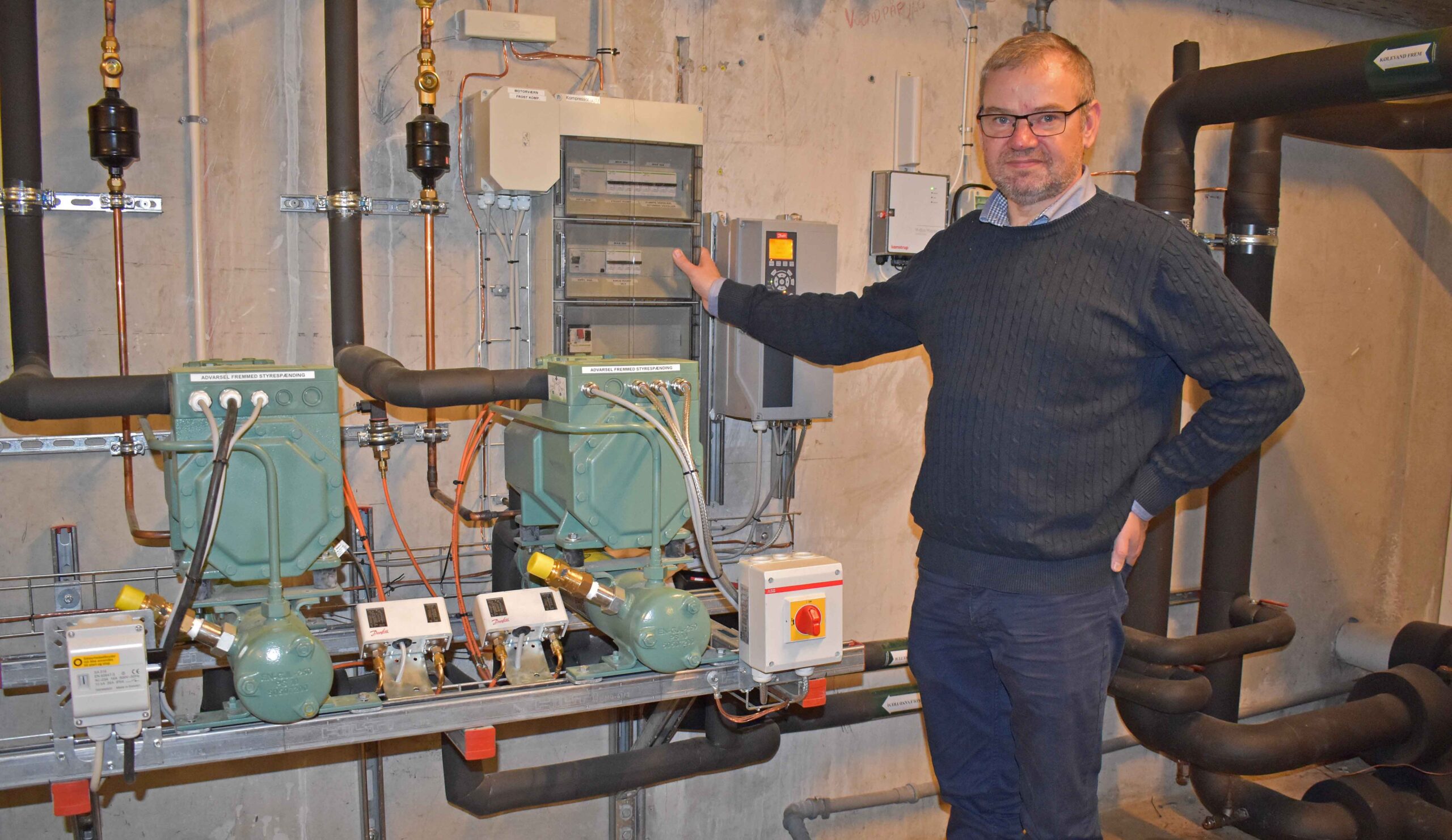 – Før havde vi fire kompressorer til at lave kulde. Ligesom varmeanlægget stammede det fra 1985 og var utidssvarende med et stort elforbrug og med nogle komponenter, der ikke kunne repareres mere. Derfor var det ret nervepirrende, om anlægget en dag ville gå ned. Hvad skulle vi så gøre? Du får ikke lige sådan et anlæg fra den ene dag til den anden, og vi har fødevarer for 100.000 kr. stående på køl og frost, påpeger Mikkel Simonsen.