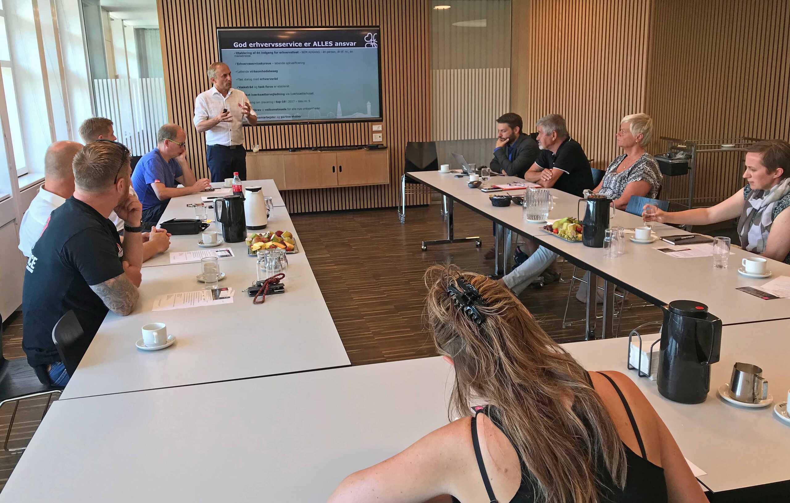 Efter borgmesterens gennemgang af den kommunale service på området fortalte konsulent Robert K. Schmidt fra Iværksætterhuset og formand Kim Rasmussen, Høje-Taastrup Erhvervsforum om deres ydelser til det lokale erhvervsliv, herunder Iværksætterhusets workshops.