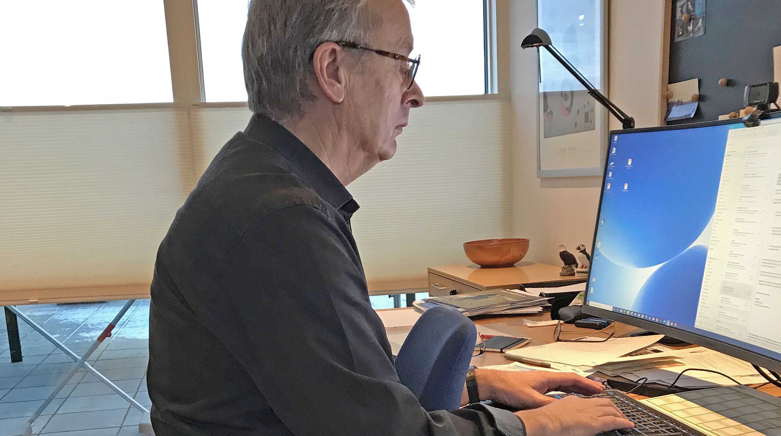– Forkerte arbejdsstillinger kan give alvorlige skader i muskler og led, og det er også vigtigt, at du bevæger dig, mens du arbejder, så blodcirkulationen holdes i gang. Heldigvis er der mange hjælpehjælper, fx en RollerMouse i stedet for en almindelig pc-mus og en fodskammel, så man kan skifte fodstilling, siger Janne Kock.